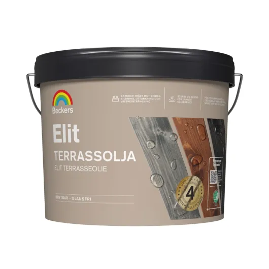 Elit träolja är avsedd för årlig behandling av allt slags obehandlat, tryckimpregnerat eller tidigare oljat trä utomhus såsom trätrall och trädgårdsmöbler. En olja som håller högsta kvalitet, motverkar uttorkning och sprickbildning samt gör ytan vattenavvisande och lätt att underhålla.