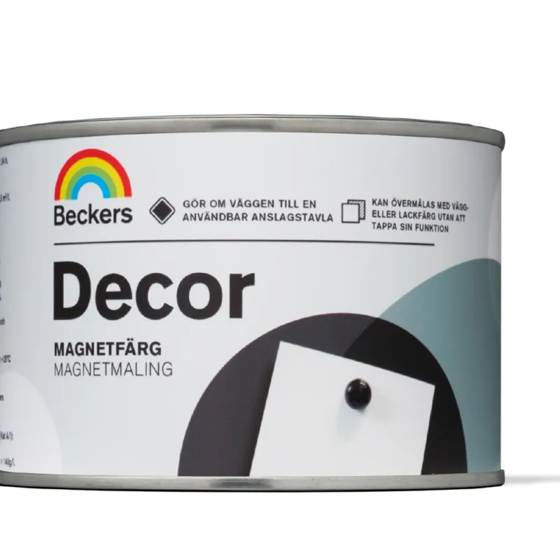 Beckers Magnetmaling er en vanntynnbar maling som gjør at magneter får feste på den malte flaten. Malingen passer best på sparklede overflater, puss, betong, treplater, spon, gipsplater. Når du maler med Magnetmaling, får du en matt, mørkegrå farge. Ønsker du en annen farge, kan Magnetmaling enkelt overmales med valgfri farge uten å miste den magnetiske effekten.