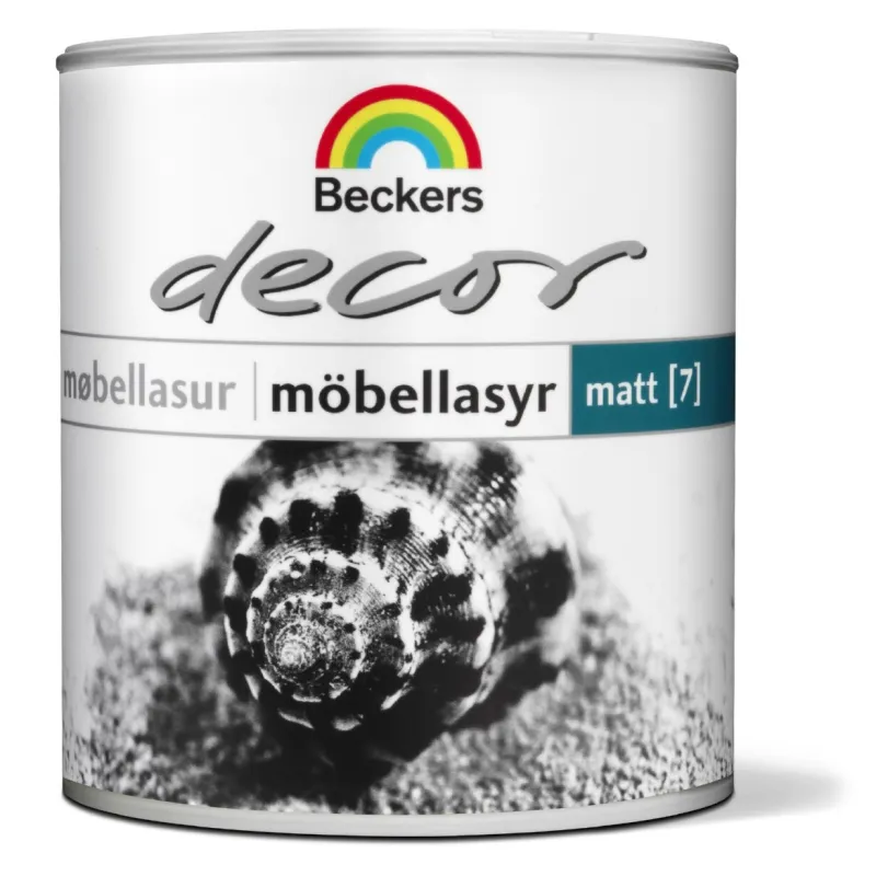 Beckers Decor Møbellasur er en matt, vanntynnbar beis som brukes til beising av møbler, kjøkkendører og dører, lister og panel. Med Decor Møbellasur får du en transparent overflate med vakker glans og dybde. Beisen kan brekkes til i transparente favorittfargene dine for å gi det ytterste sjiktet av treet et lekkert, personlig preg.