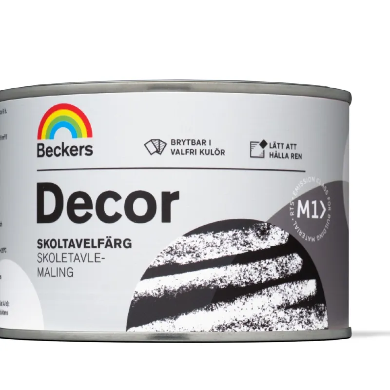 Beckers Skolteavlemaling er en vanntynnbar maling som gir en matt overflate som man kan skrive og tegne med kritt på og er å lett vaske av med en fuktig svamp/klut. Malingen kan dessuten brekkes slik at du kan male den klassiske sorte tavlen i din egen favorittfarge. Beckers Skoletavlemaling er malingen for hele familien.