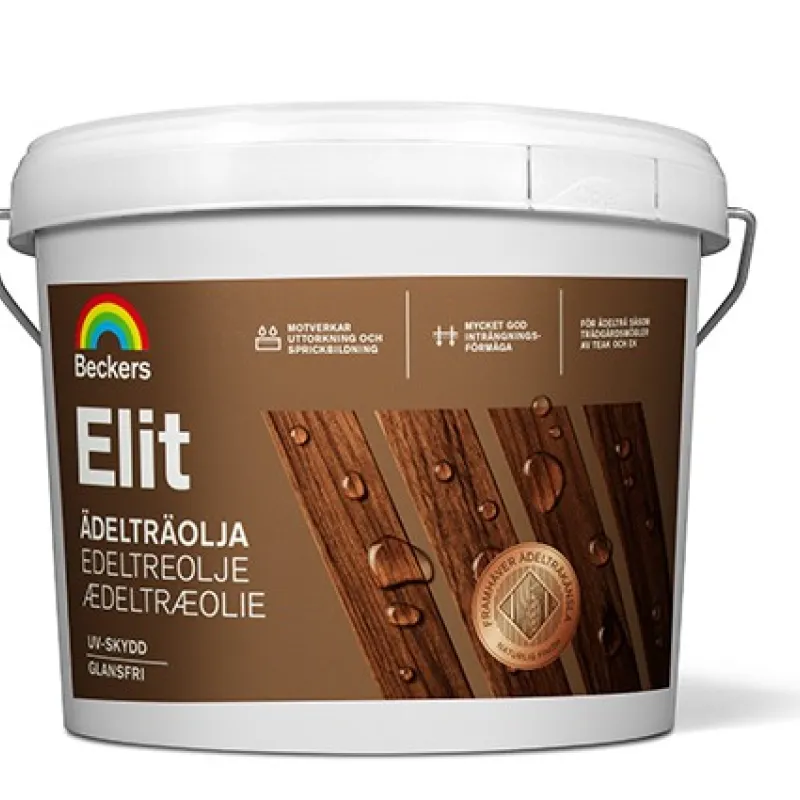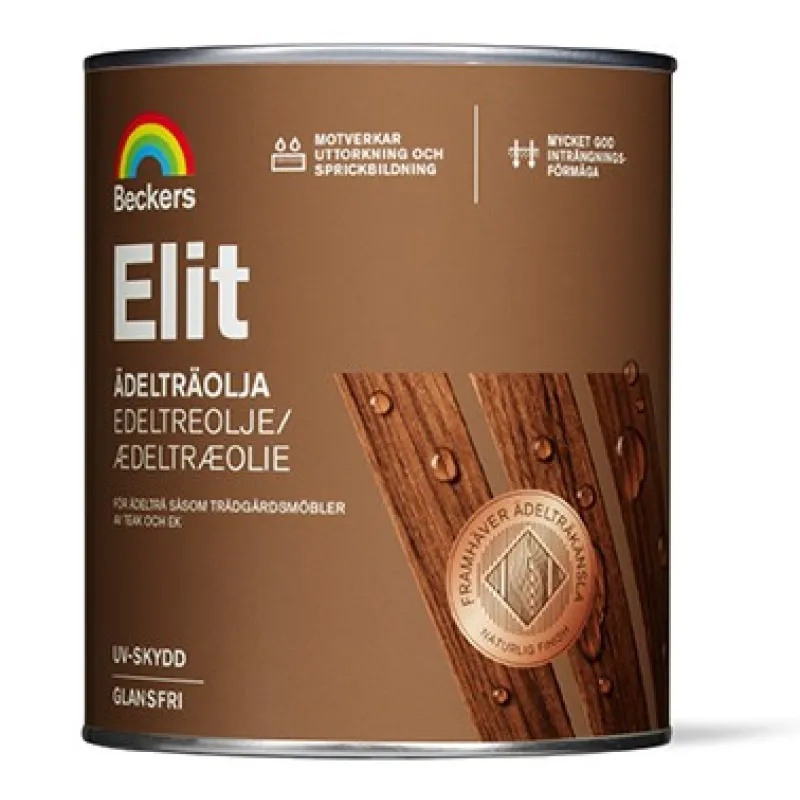 Beckers Elit Edeltreolje er en olje med høy kvalitet til årlig behandling av edeltre som eik og teak. Oljen har en svært god inntrengningevne og gir en vannavvisende overflate som beskytter mot uttørking, sprekkdannelser og skitt. Oljen har en svak brunfarge som gir et lekkert utseende og framhever treets egen farge.