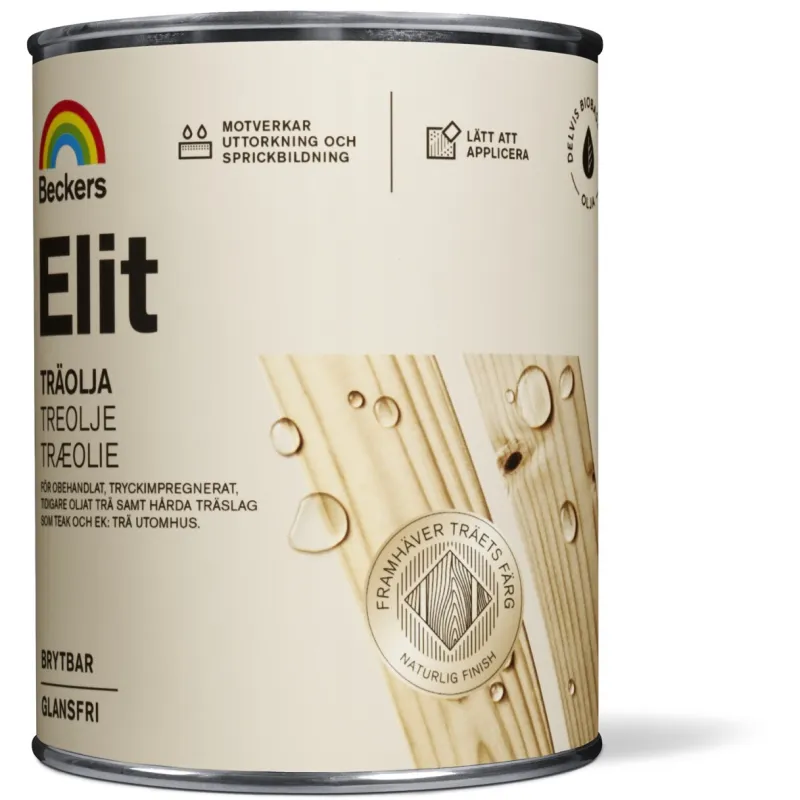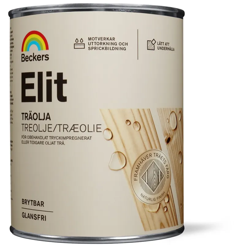 Elit Treolje er en olje til årlig behandling av all slags ubehandlet, trykkimpregnert eller tidligere oljet tre utendørs, som terrassebord, terrasser og hagemøbler. Olje i god kvalitet, motvirker uttørking og sprekkdannelser og gjør overflaten vannavvisende og enkel å vedlikeholde.
