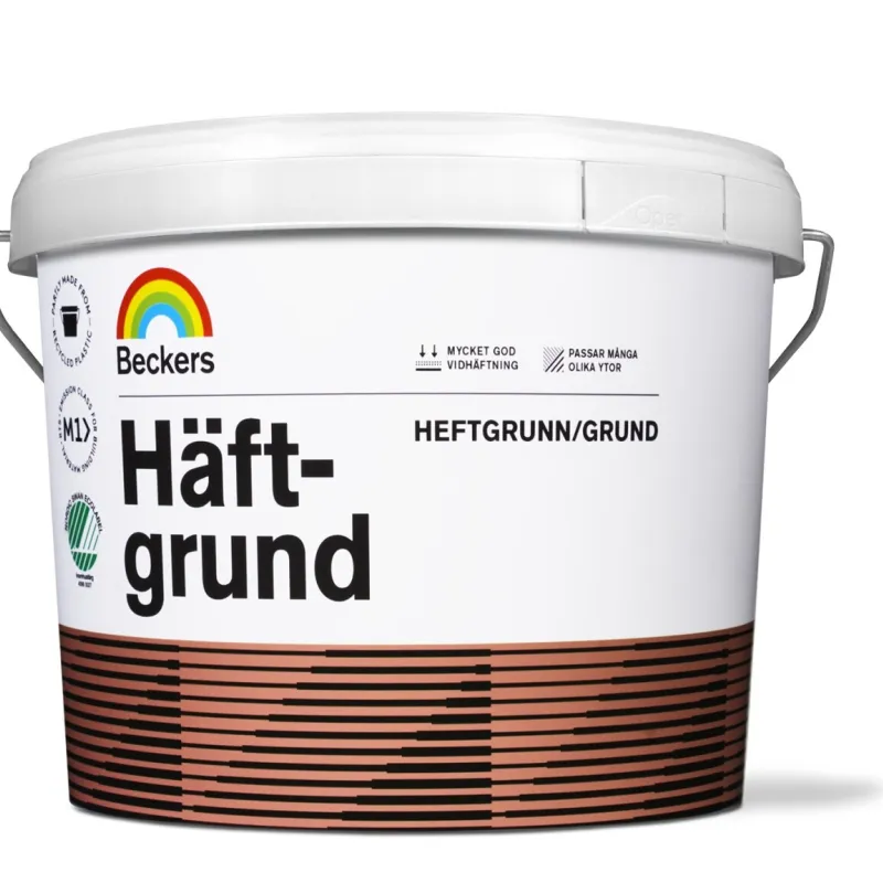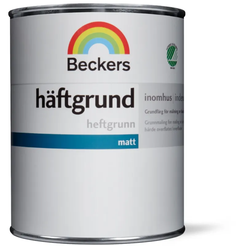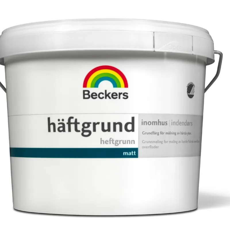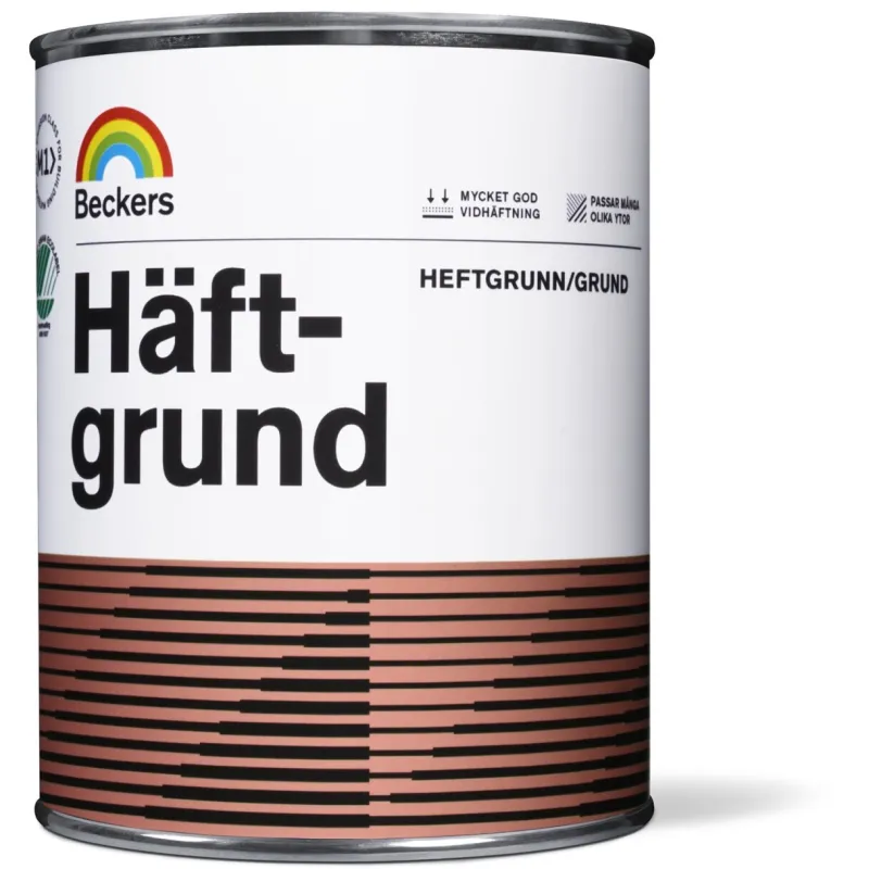 Vanskelig å få malingen til å feste på hardt underlag? Grunn med Heftgrunn. Beckers Heftgrunn er en akrylat grunning med ekstra godt feste til harde ikke-sugende underlag. Den brukes primært innendørs på industrilakkerte, forzinkete/galvaniserte, aluminium, kobber og harde PVC-overflater Heftgrunn kan også brukes som grunning på detaljer utendørs som ikke krever rustbeskyttelse. Malingen tørker raskt og kan overmales med Beckers vanntynnbar dekkmalinger.