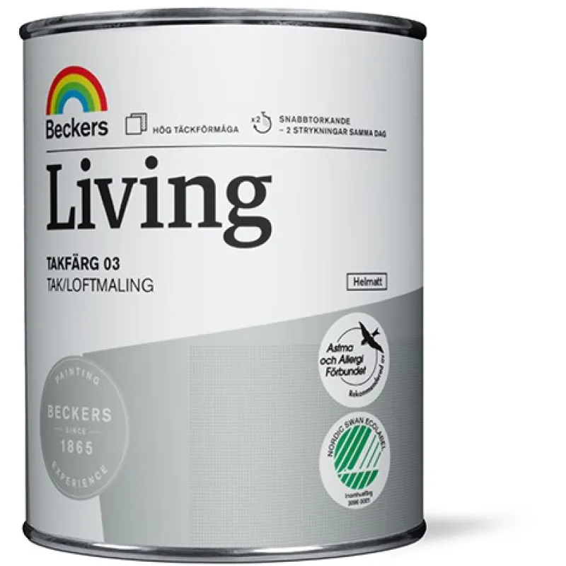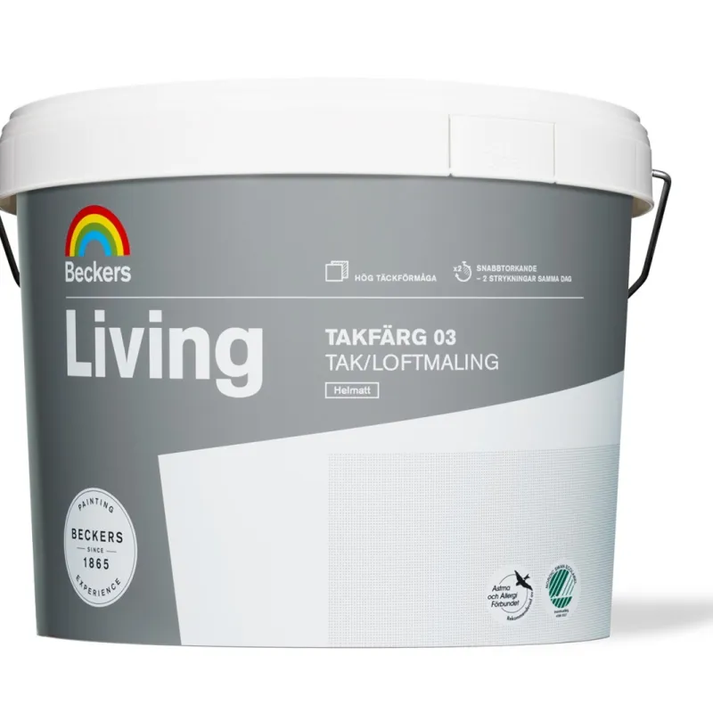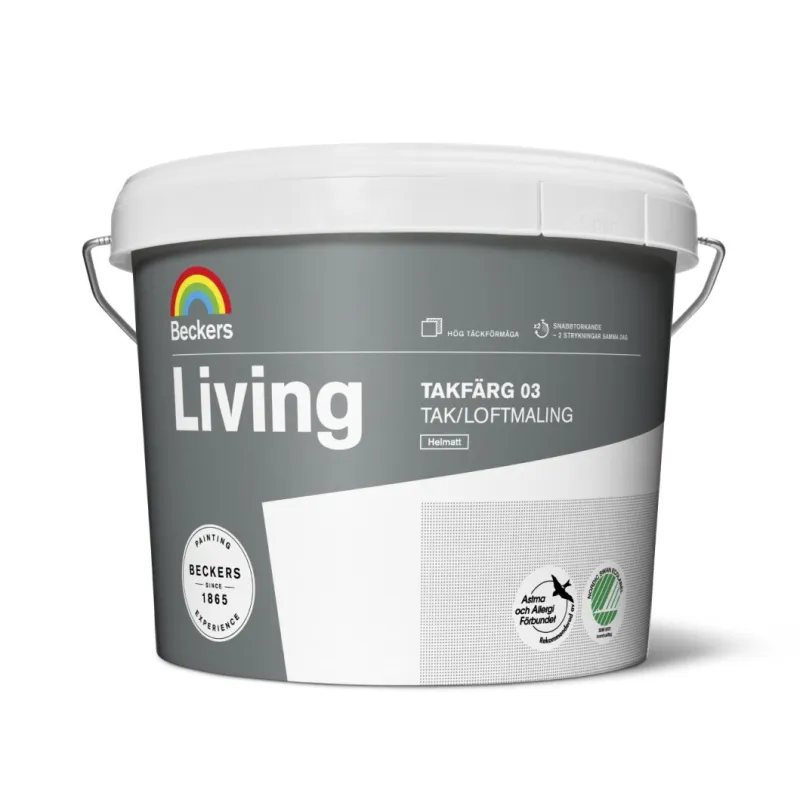 Living Takmaling 03 er en helmatt premium maling som er velegnet til både umalte og tidligere malte tak innendørs. Malingen brukes fortrinnsvis på underlag som betong, mur, trefiber, spon- eller gipsplater. Malingen er lett å male med og har høy dekkevne. Living takmaling tørker raskt og har ubetydelig lukt.
