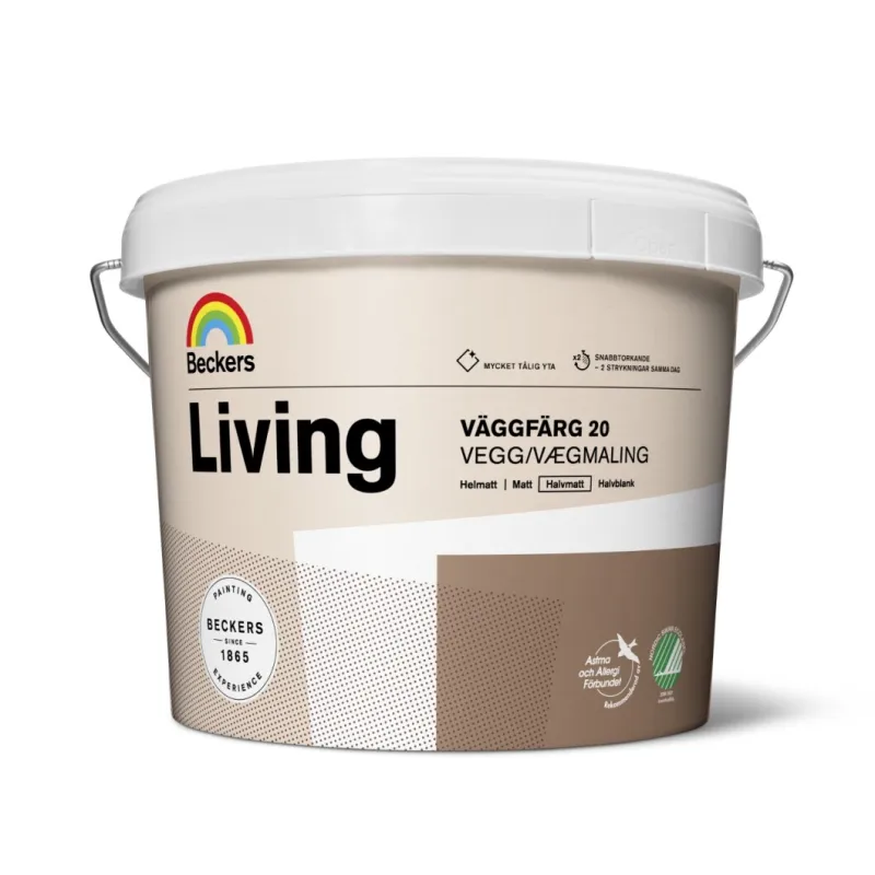 Living Veggmaling 20 er en førsteklasses maling som egner seg både til umalte og tidligere malte eller tapetserte innervegger. Den halvmatte glansen gjør malingen slitesterk og veldig egnet for bruk i entre og kjøkkenet. Med Living 20 har du en maling som fester seg godt, har høy dekkende kraft og ikke gulner med alderen.