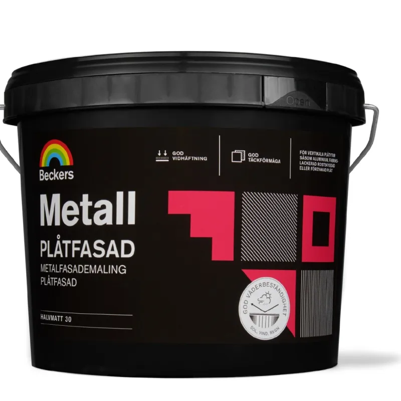Trenger metall fasaden renovering? Mal på nytt! Beckers Fasademaling er en halvblank maling beregnet på maling av fabrikkmalt metallplate, umalt rustbeskyttet metallplate, aluminium og galvanisert metallplate. Malingen fester seg godt på de fleste overflater og gir en veldig god beskyttelse mot vær og vind.