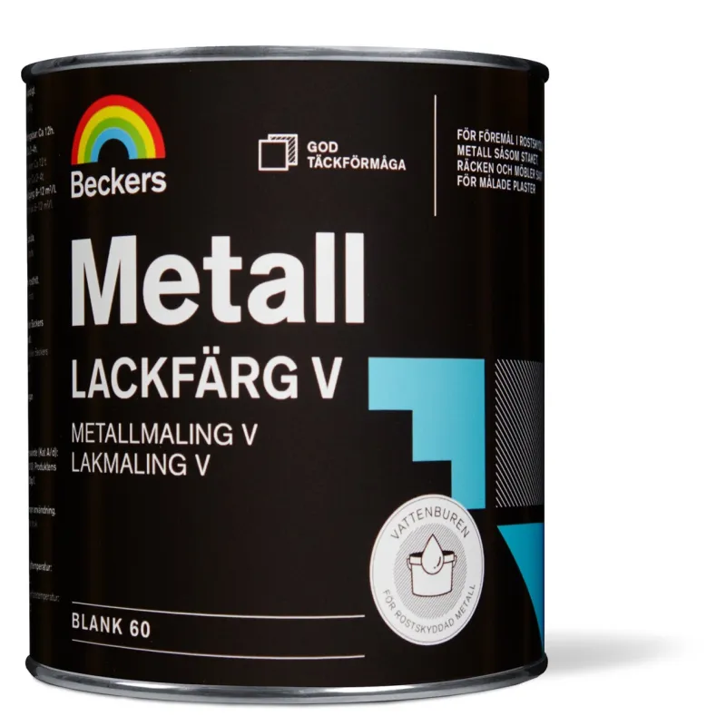 Frisk opp metalldetaljene med Metallmaling V. Beckers Metallmaling V er en blank maling som brukes på tidligere malt eller grunnet stål, sink og aluminium. Malingen er spesielt egnet for maling av rustbeskyttet metall som maskindeler, verktøy, stålmøbler og metallplater. Fargen er lett å male med og dekker godt.