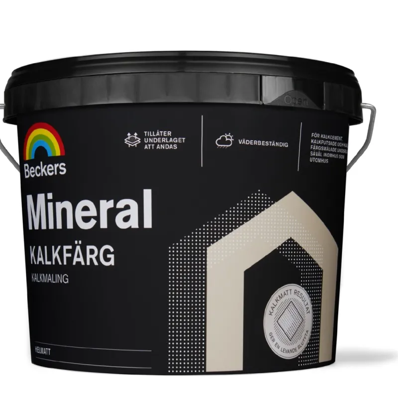 Renover og bevar gamle pussflater med kalkmaling. Beckers Mineral Kalkmaling males på kalksement og kalkpussede overflater innendørs og utendørs. Malingen, som kan tintes, kan også brukes til å friske opp hvitkalkede overflater. Når du maler med Beckers Mineral kalkmaling får du en tradisjonell og levende overflate.