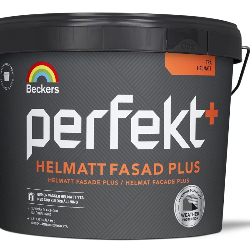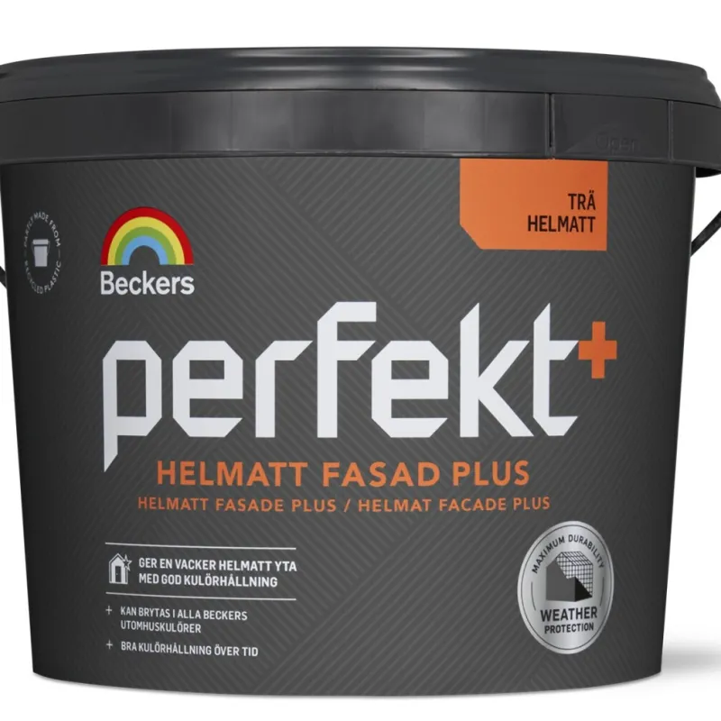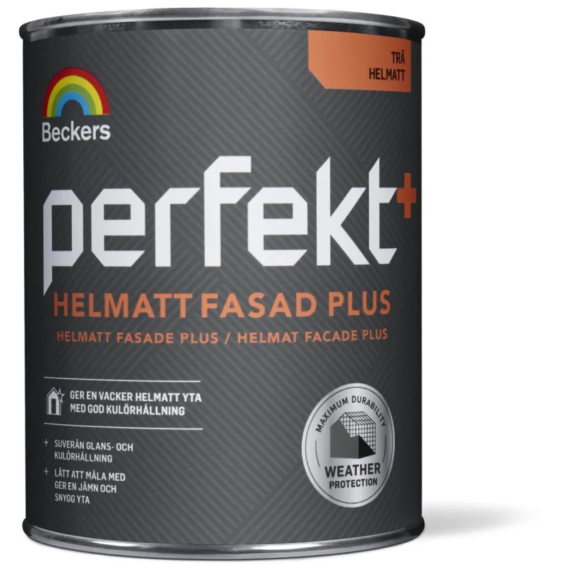 Perfekt Helmatt Fasade Plus er en helmatt maling for trefasader. Den gir et moderne preg på trefasader med et vakkert og elegant helmatt utseende. Perfekt Helmatt Fasade Plus har fantastisk god fargeholdbarhet over lang tid og gir trefasaden maksimal beskyttelse. I system med Beckers Primex Grunnolje Tre Plus og Primex Tregrunn Plus motvirker den opptak av smuss og svartsopp på overflaten. Perfekt Helmatt Fasade Plus har god utflyt, tørker raskt og kan males på de fleste tidligere malte treoverflater.