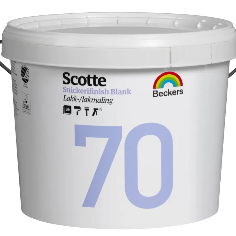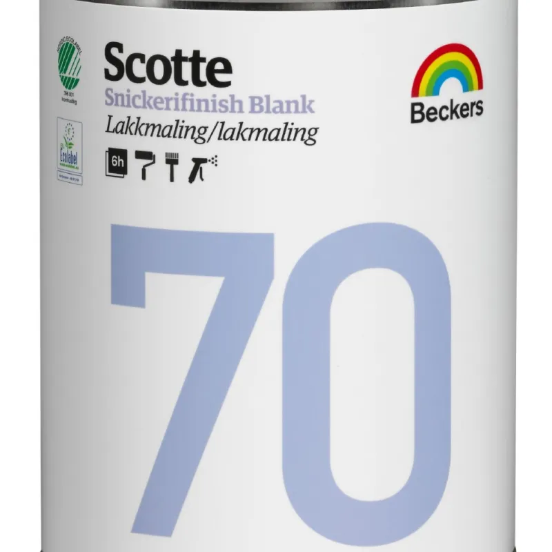 Scotte 70 Snickerifinish er en blank akrylmaling til tre og panel som brukes på alle slags dører,vinduer, lister og paneler innendørs, både på malte og umalte flater. Malingen hefter svært bra på flater som er tidligere malt, den er lett å påføre, flyter god ut og har gode dekkegenskaper.