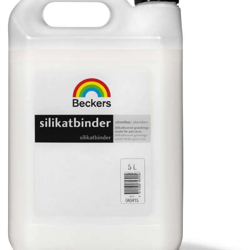 Beckers Silikatbinder forsterker du porøse, ujevne sugende underlag før du maler med Silikatmaling. Silikatbinder kan brukes både utendørs og innendørs på puss, betong og frostsikre fliser, fiberforsterkede mineralplater og på gammel mineral- og silikatmaling. Når du bruker Beckers Silikatbinder, hjelper du overflaten å puste ut innefra og gir god beskyttelse mot muggdannelse.