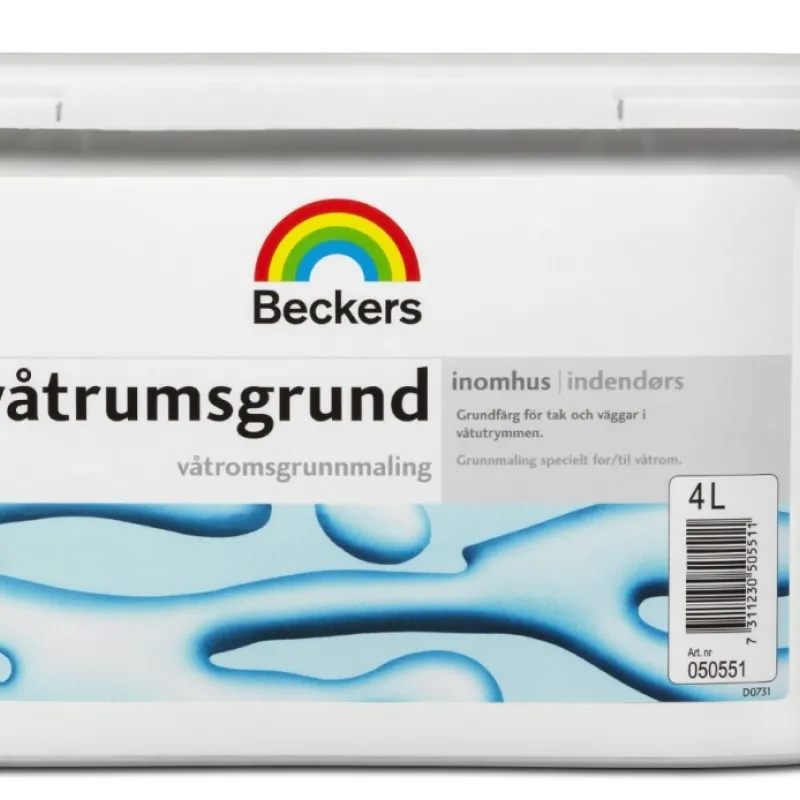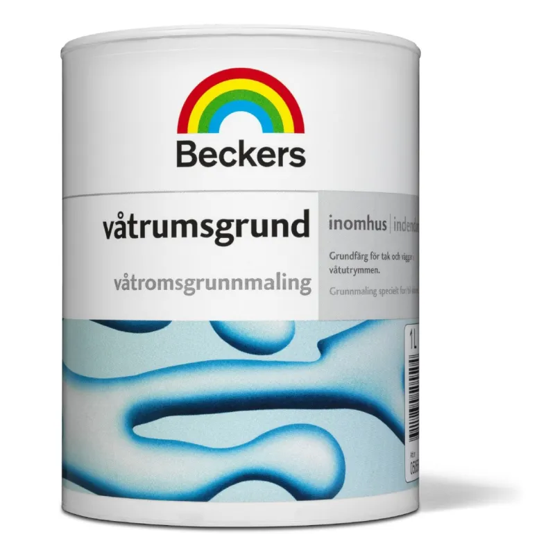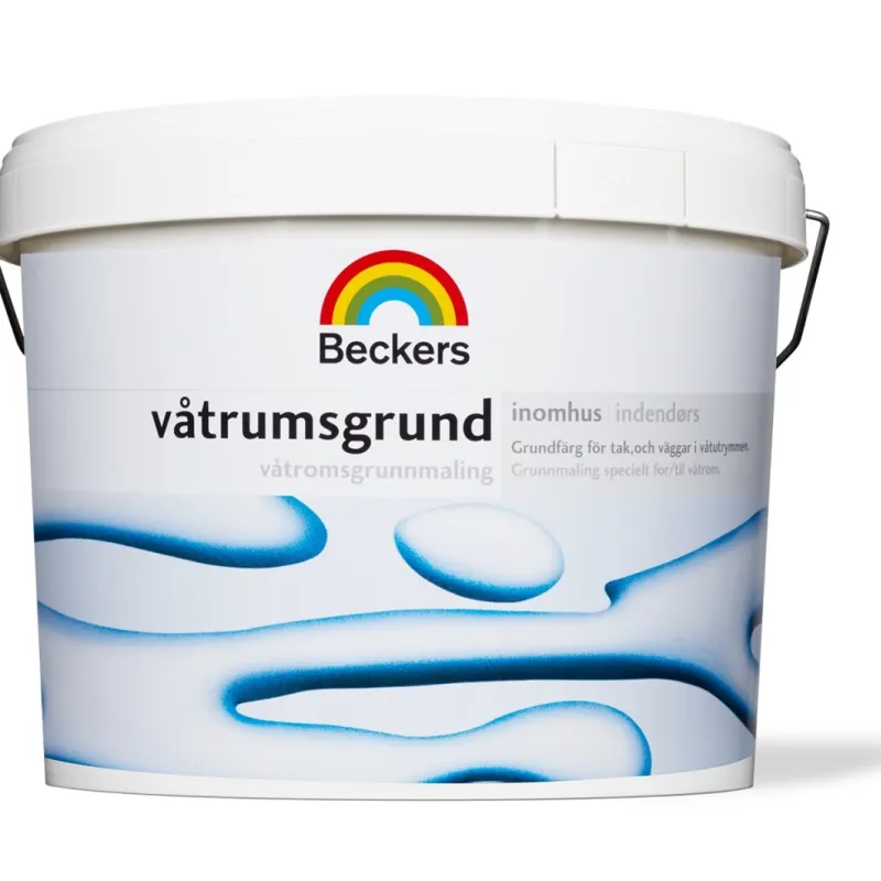 Beckers Våtromsgrunn er grunning til overflater i rom som er utsatt for fukt, som dusj-, bad- og vaskerom. Våtromsgrunn, sammen med Våtromsparkel og Våtromsmaling, er en del av Beckers malingsystem som er godkjent av Den Svenske Malerbransjens Våtromskontroll for bruk i våtrom. Malingen brukes til forliming, liming og grunning av vev på gipsplater, plater beregnet til våtrom, puss og betong. Mal med Beckers våtromsystem for å få et tett sjikt som beskytter underlaget mot vann og fuktig påvirkning.