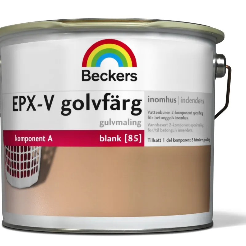 Lei av den grå og triste fargen på betongen? Mal den med EPX-V Gulvmaling. Beckers EPX-V Gulvmaling er en blank 2-komponent epoxymaling som brukes på malt eller umalt betonggulv som utsettes for kjemiske og mekaniske påkjenninger som for eksempel industri-, lager-, garasje- og våtromsgulv. EPX-V Gulvmaling komp. A brukes sammen med EPX-V Gulvmaling herder Komp. B.