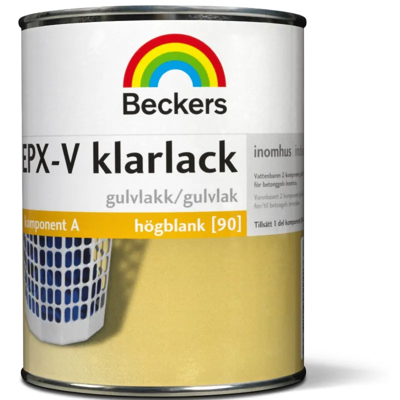 Gjør gulvet ekstra slitesterkt med epoxylakk EPX-V er en vanntynnbar 2-komponent epoxylakk til betonggulv som er malt med epoxy med eller uten gulvspon. Klarlakken passer på gulv innendørs som skal tåle kjemiske og mekaniske belastninger. Produktets spesielle egenskaper gjør at det vanligvis brukes i industri, lager, garasje og våtrom. EPX-V Klarlakk Komp. A brukes sammen med EPX-V komponent B.