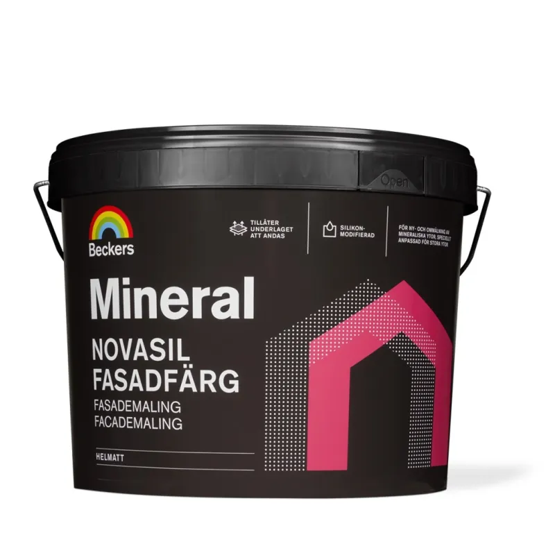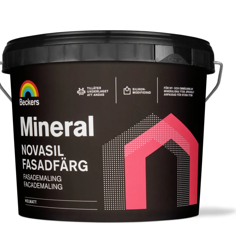 Novasil Fasademaling er en silikonmodifisert akrylatmaling som brukes til å male nye og tidligere behandlede mineralflater innendørs og utendørs. Malingen er egnet for maling av større gjenstander i betongkonstruksjoner, solid puss av kalksement og andre typer faste mineraloverflater. Med Novasil Fasademaling får du en slitesterk overflate som ikke slipper fuktighet inn, men som lar fasaden puste.