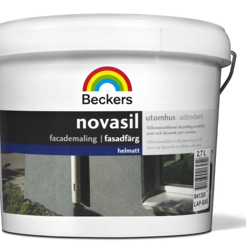 Novasil Fasademaling er en vanntynnbar, silikonmodifisert akrylatmaling som brukes til utendørs maling av nye og behandlede betong- og pussflater i god stand.