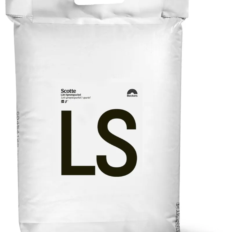 Scotte LS er en lett, mellomgrov sprøytesparkel for skjøt-, flekk- og helsparkling samt til grenging i tørre rom. Scotte LS brukes på betong, lettbetong, puss, gipsplater. Sparkelen er tilpasset påføring med sparkelsprøyte. Sparkelmassen oppfyller kravenet il CE merking i henhold til EN 15824.