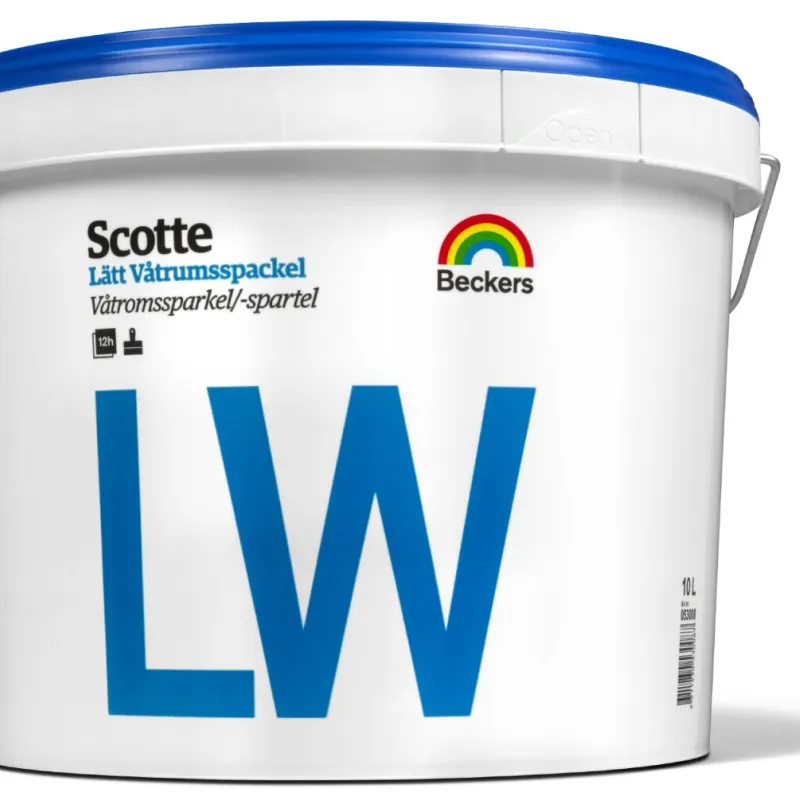 Scotte LW er en finkornet, lett våtroms-sparkel med svært god fyllevne til våtrom innendørs. Bruk Scotte LW der det er nødvendig med et vanntett resultat. Sparkelen brukes i våtrom og fuktige rom på betong, lettbetong, puss, flis og vev samt gips- og andre byggplater. Sparkle med Scotte LW for optimalt feste og et solid resultat.