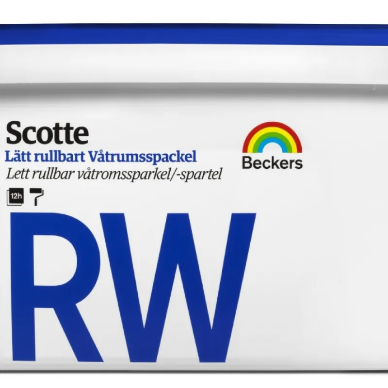 Scotte RW er en mellomgrov, lett rullbar våtromssparkel med meget god fyllevne. Først og fremst beregnet på bruk i våtrom. Den smidige konsistensen gjør den meget lett å påføre med rull. Scotte RW brukes innendørs på underlag av betong, lettbetong, puss, murstein, vev samt gips og andre byggplater som krever våtfast eller ekstra hard sparkel. Har meget god hefteevne og våtfasthet. Gir et ekstra våtfast underlag før maling og tapetsering. Sparkelmassen oppfyller kravenet il CE merking i henhold til EN 13963.
