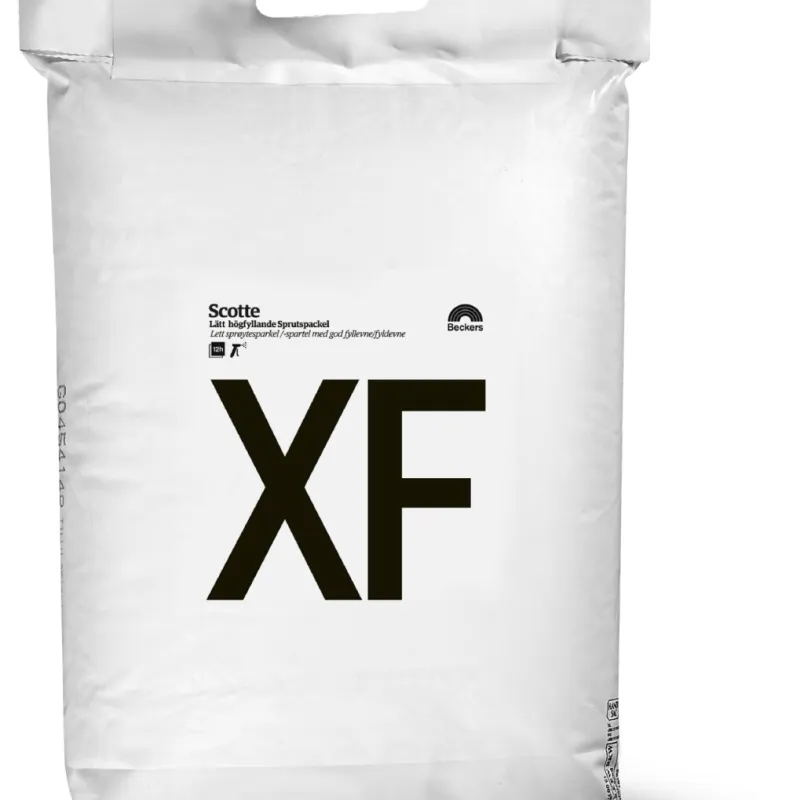 Scotte XF er en mellomgrov, lett spøytesparkel med god fyllevne for bredsparkling og øvrig sparkling innendørs hvor en fin, malingsklar overflate ønskes. Scotte XF kan brukes på de fleste vanlige forekommende byggematerialer. Spesielt for renovering av grove overflater innendørs hvor en fin, malingsklar overflate ønskes. Sparkelmassen oppfyller kravenet il CE merking i henhold til EN 15824.