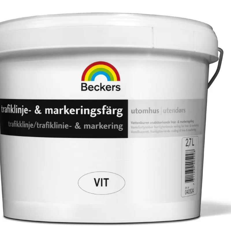 Trafiklinje- & markeringsfärg er en akrylatbasert maling for linjemarkering av veier, parkeringsplasser med mer. Malingen er hurtigtørkende og gir en meget slitesterk markering på underlag som asfalt, oljegrus, betong med mer. Kan nyanseres i en anbefalt gul nyanse i Beckers fargeblandingssystem.